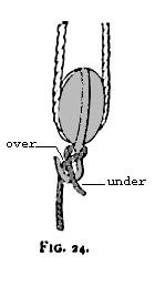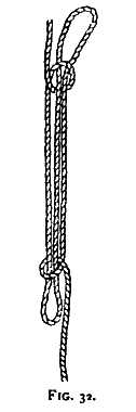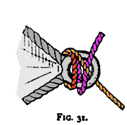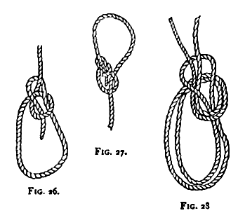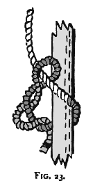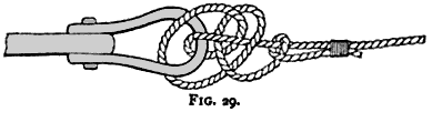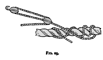 the double block is fastened by a rolling hitch (see Fig. 25) to the