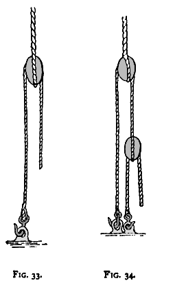 The SINGLE-WHIP PURCHASE (Fig. 33) has a single block. This
