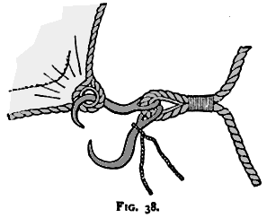 rigging, being hooked on to the cringle of the sail. A pull of one