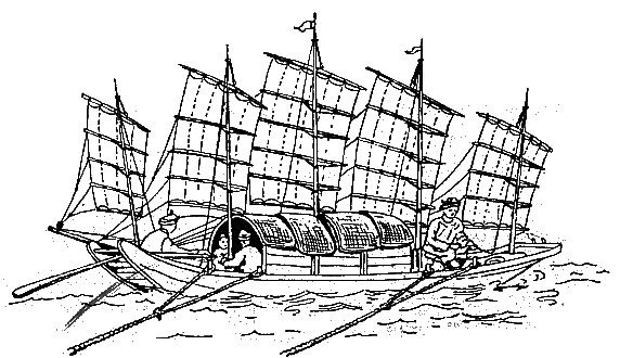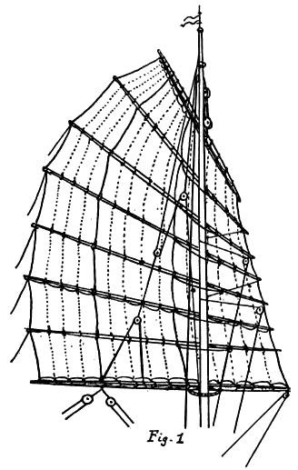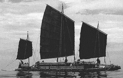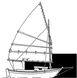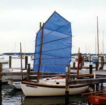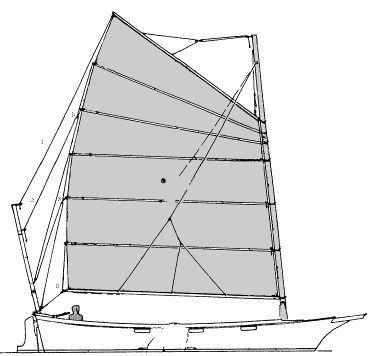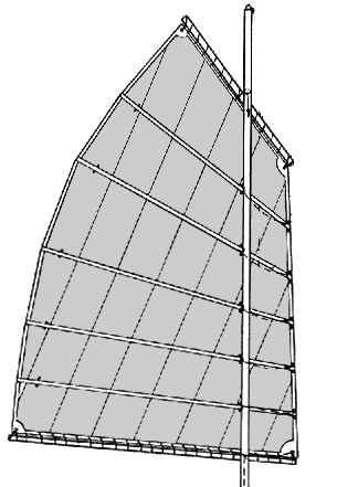Reddish also says that he picked batten sizes which would give him about a 10% camber in normal sailing conditions. On our 10-foot sail, the battens would bend so that they were about 1 foot out of line near the middle of the sail. (Make sure the boom is stiff enough that it does not bend, however). Photos of traditional Chinese sails show some bending, especially when sailing to windward.