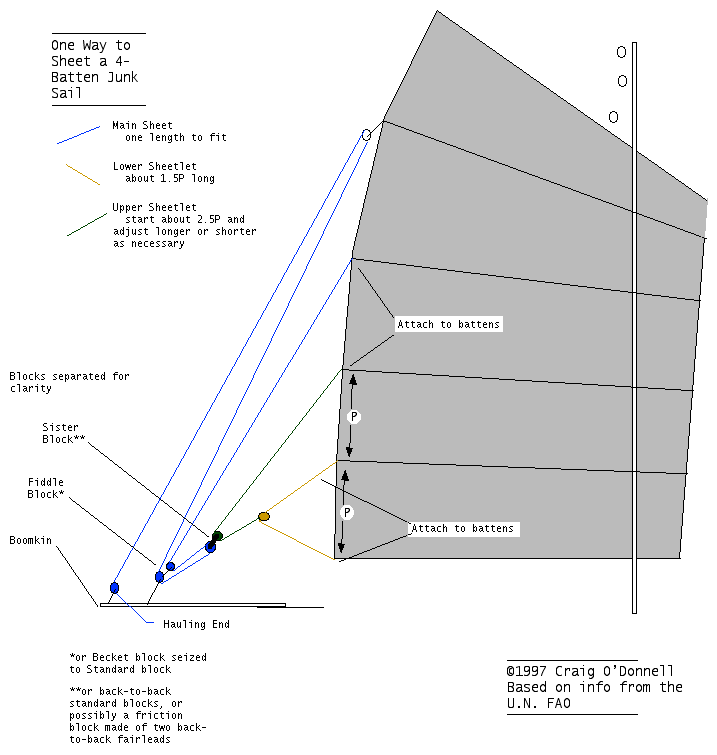 This information is from Practical Boat Owner 1/92, "Junk Rig Decoded". Many thanks to Peter Berrie for sending me a copy of the article.Making the Sail