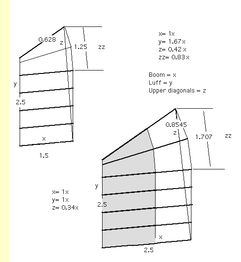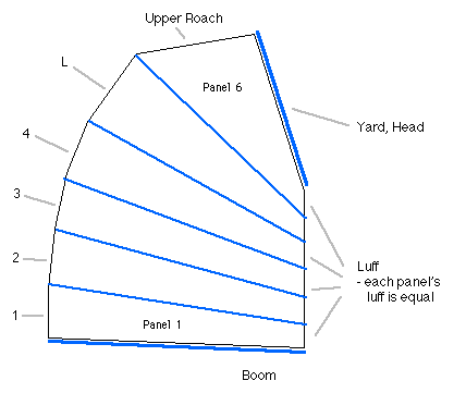 This note comes from Bill Samson in Scotland. As it turns out, he was a student of Dr. Reddish some years back and was able to get an update for us. The main differences seem to be returning to rigid battens and adding some darts to the leech to give the panels a little shape.