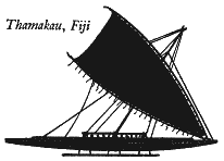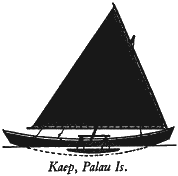 HOW ABOUT a sail? Man, I need to get around to this. I'm fooling with the Tahitian "half-claw" and the more usual delta-shaped crabclaw. These silhouettes of traditional Pacific rigs show the major sail shapes.