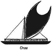 of the proa, it doesn't sit on top of a sort of finial; where's the sheet? what's that guy amidships
