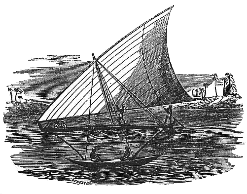 "Half-claw" sail. This small canoe tacks (bow is to the right). If it shunted the sail would be taken down and reversed: