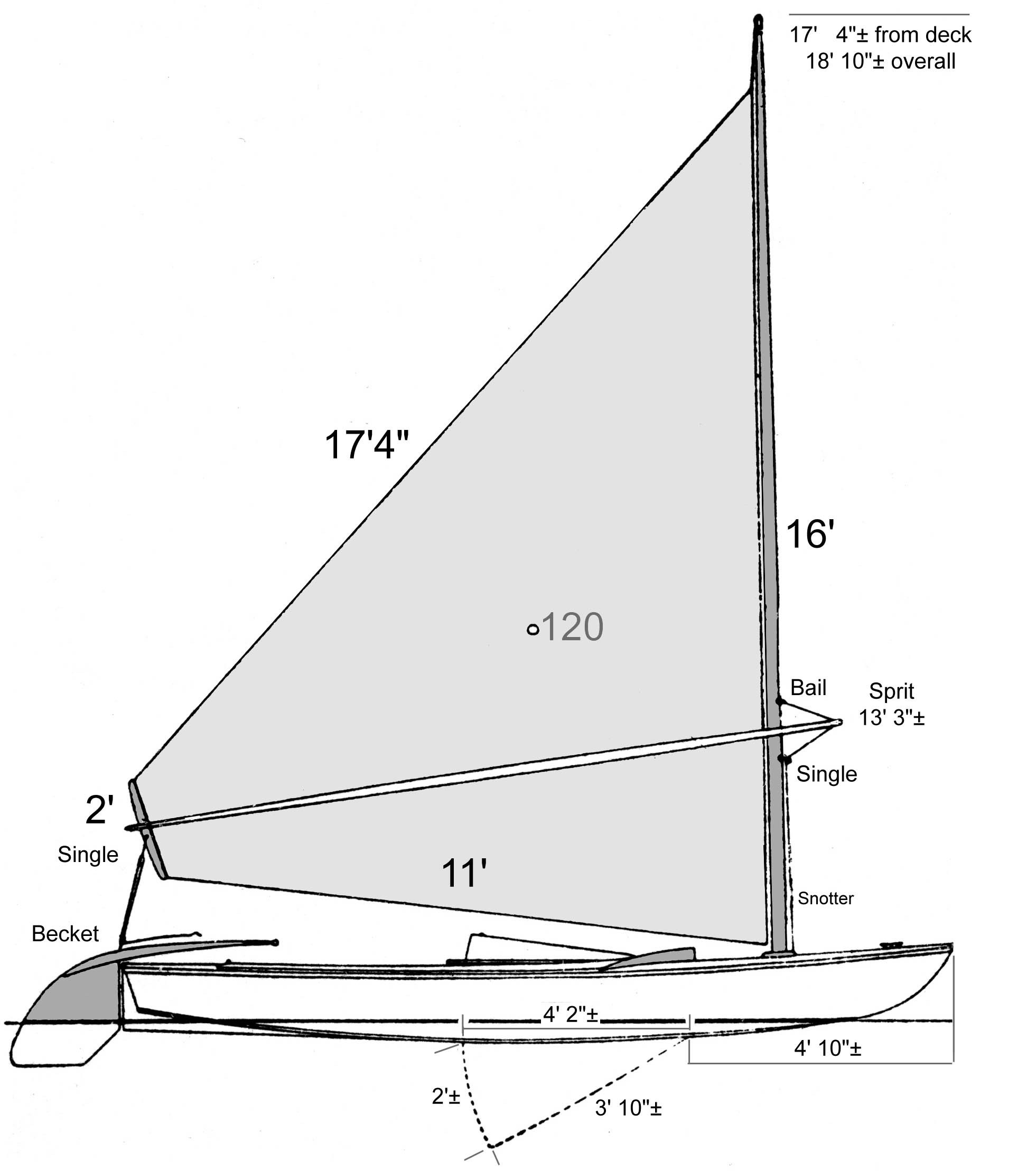 gaff cat rig, I prefer the sprit leg-o'-mutton sail once used on the