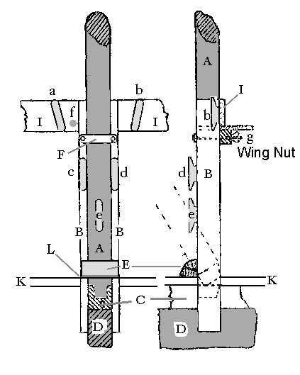 to port side of stemhead, a sampson post of 2 x 6 inch