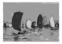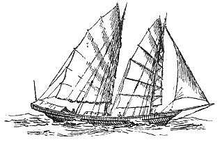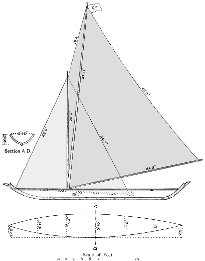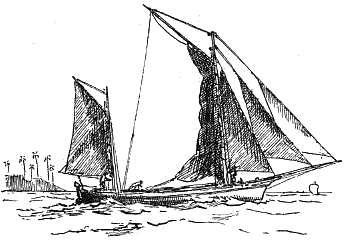 sharp squalls. Mainsail and mizen are set by an Outhaul