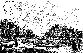 - "Across the broad breast of the river at rest gayly I